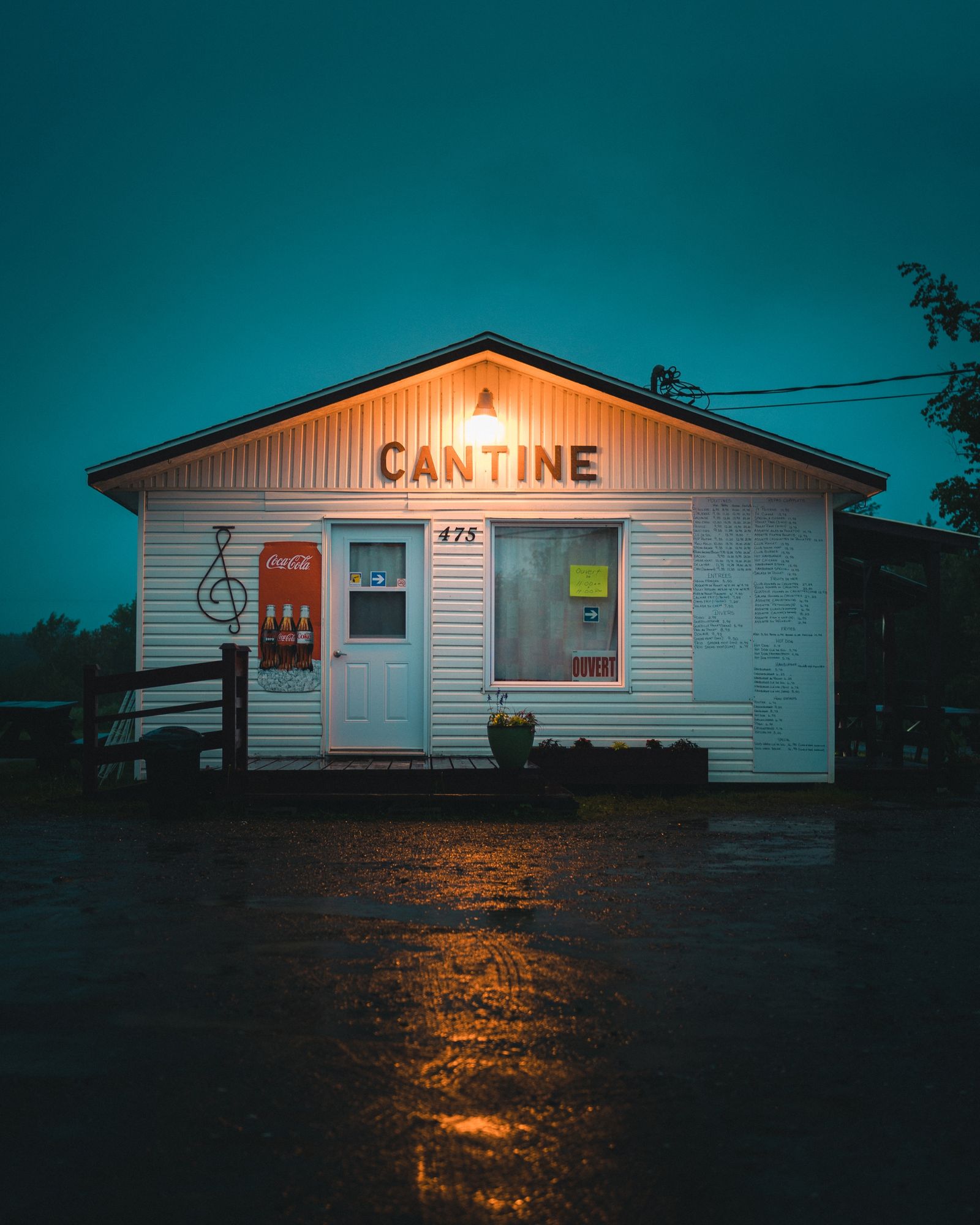 Cantine Clé de Sol on a rainy evening, Nouvelle, Québec, Canada