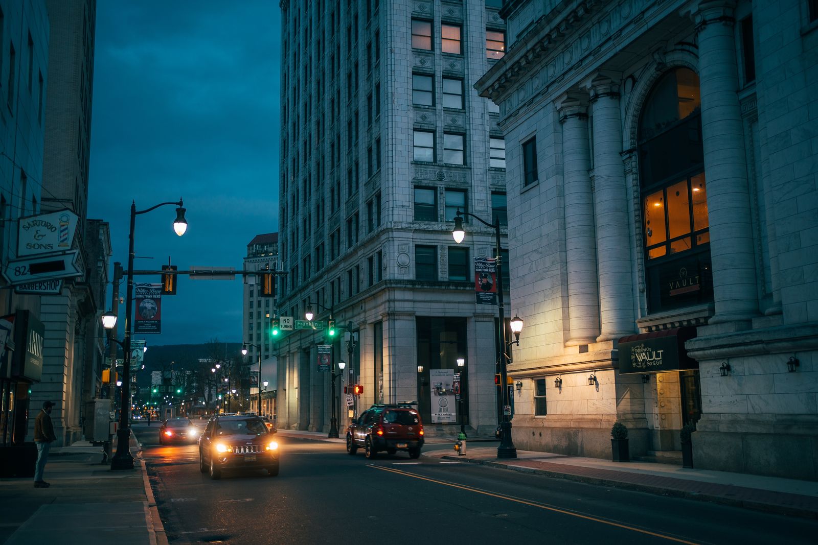 Night scene in downtown Wilkes-Barre, Pennsylvania