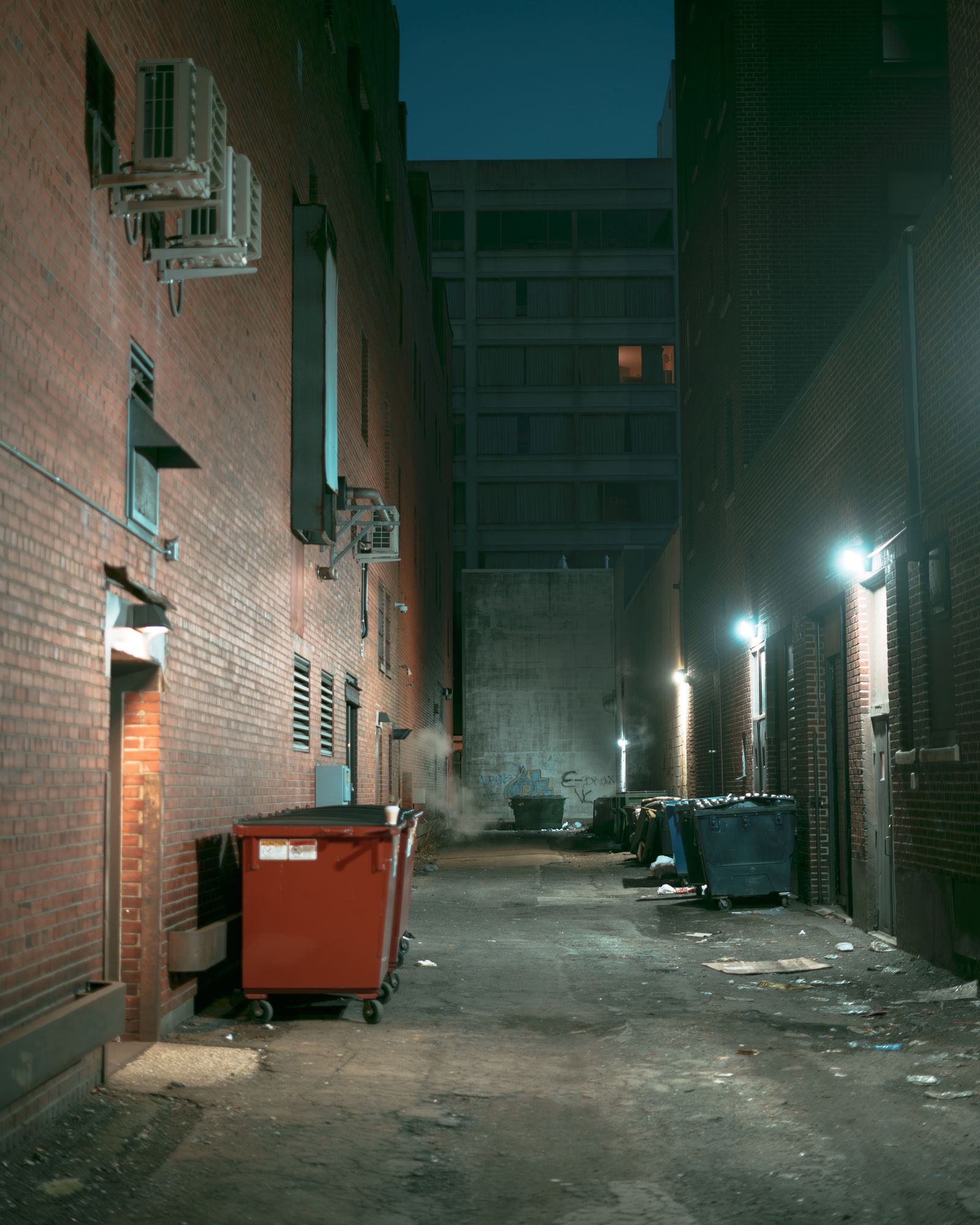 A dark alley at night in downtown Erie, Pennsylvania