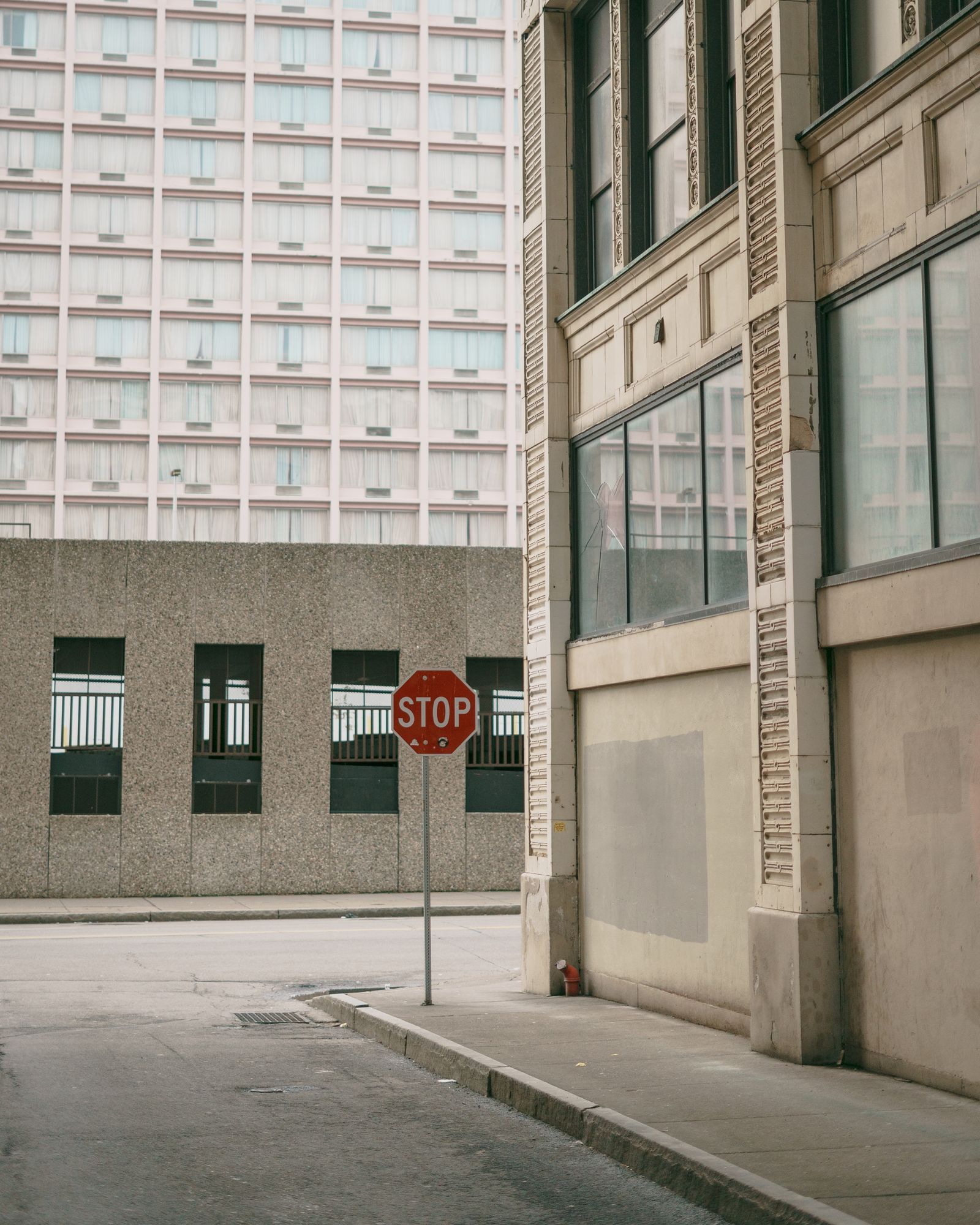 Stop sign in a narrow alley, Rochester, New York
