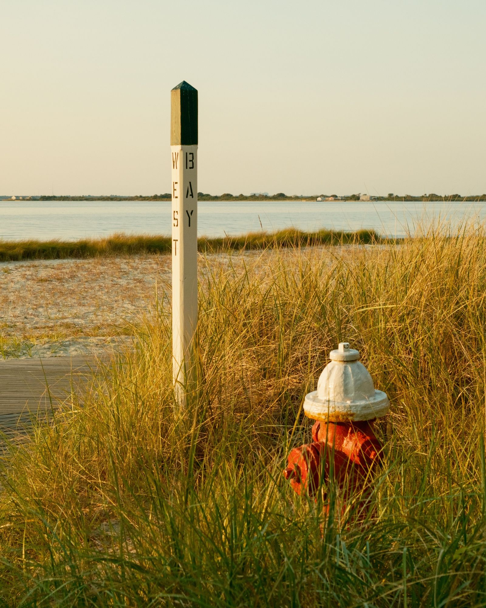 Street sign and fire hydrant in Saltaire, on Fire Island, New York