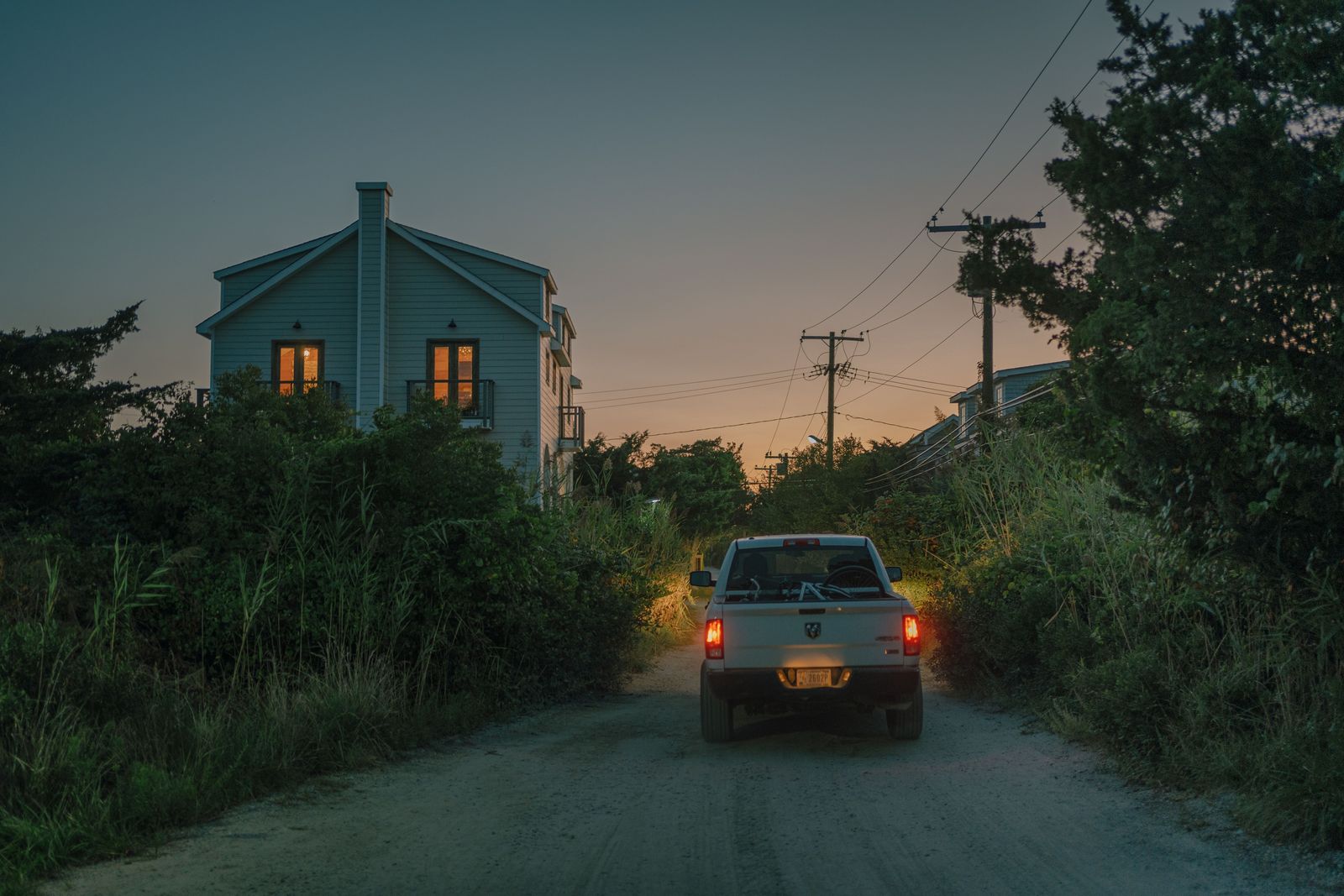 Scene on Burma Road at sunset on Fire Island, New York