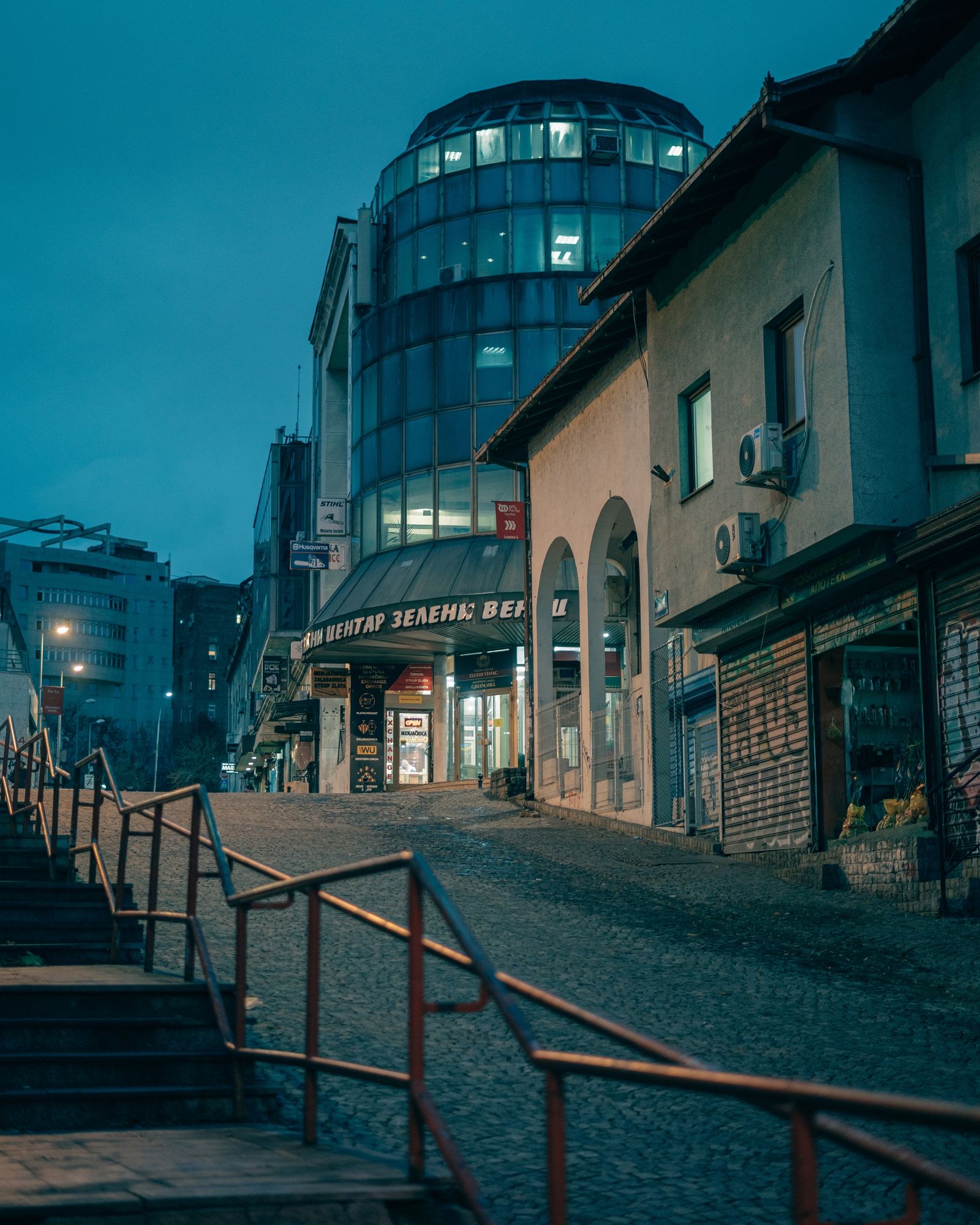 A street at night in Belgrade, Serbia