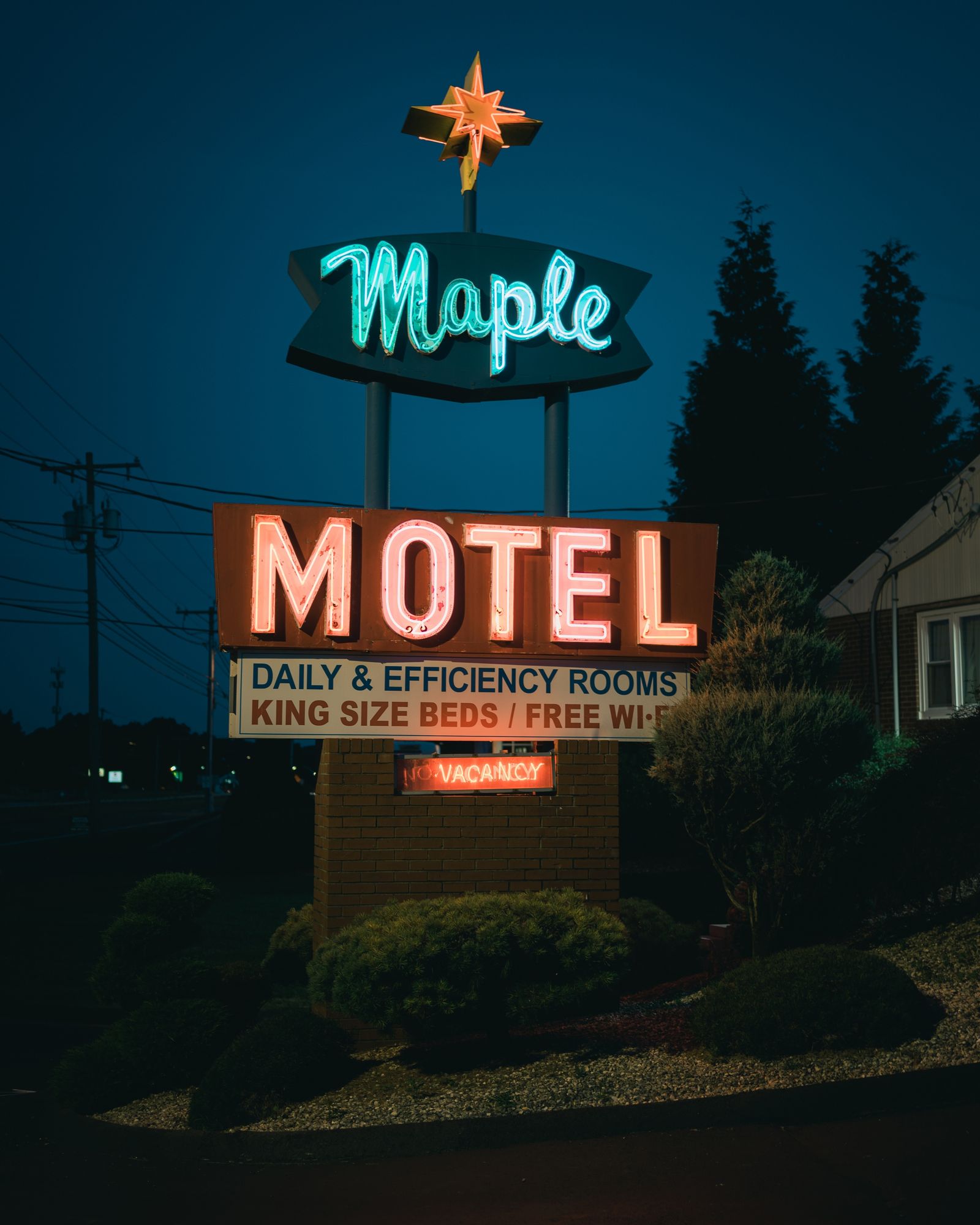 Maple Motel vintage neon sign at night, Newington, Connecticut