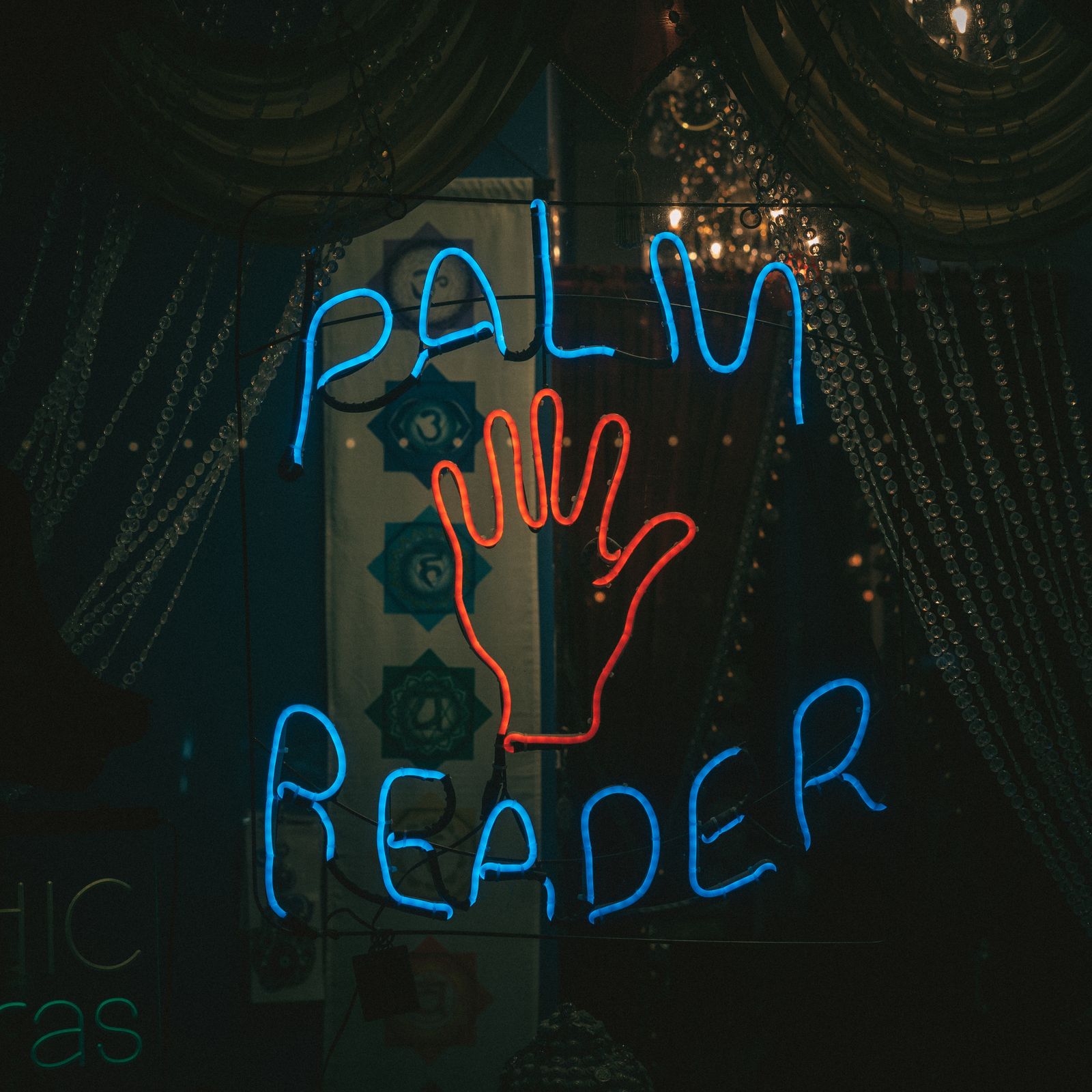 Palm reader neon sign, Kingston, New York