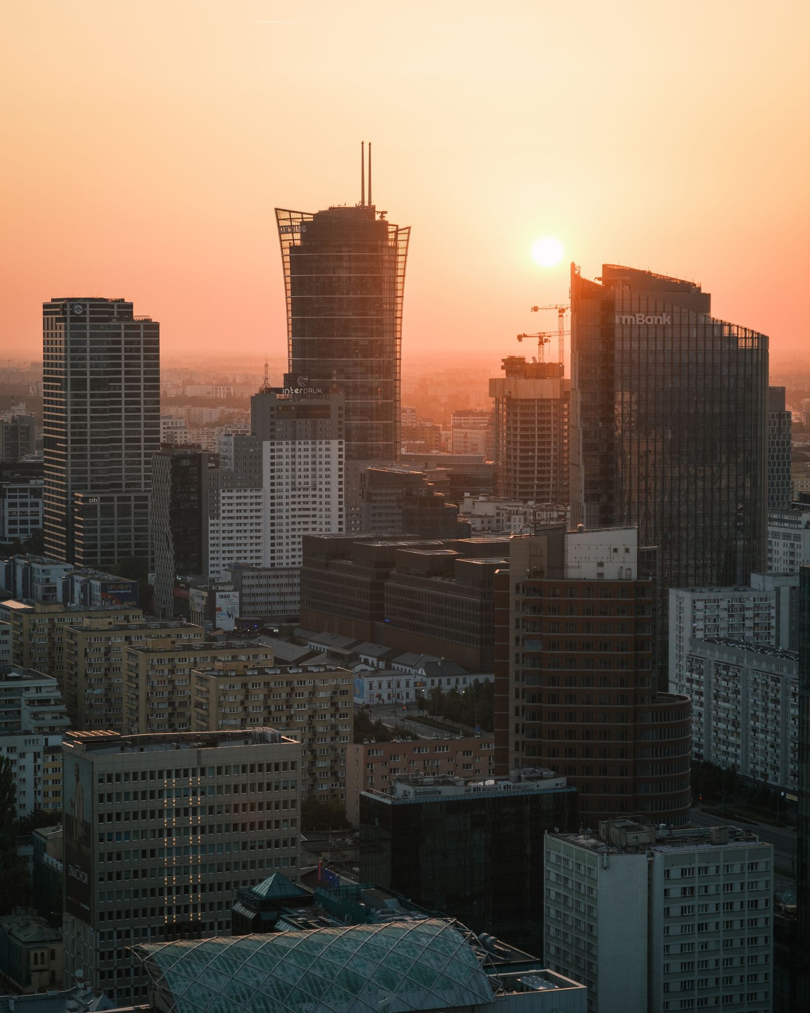 Sunset view from Palace of Culture and Science, in Warsaw, Poland