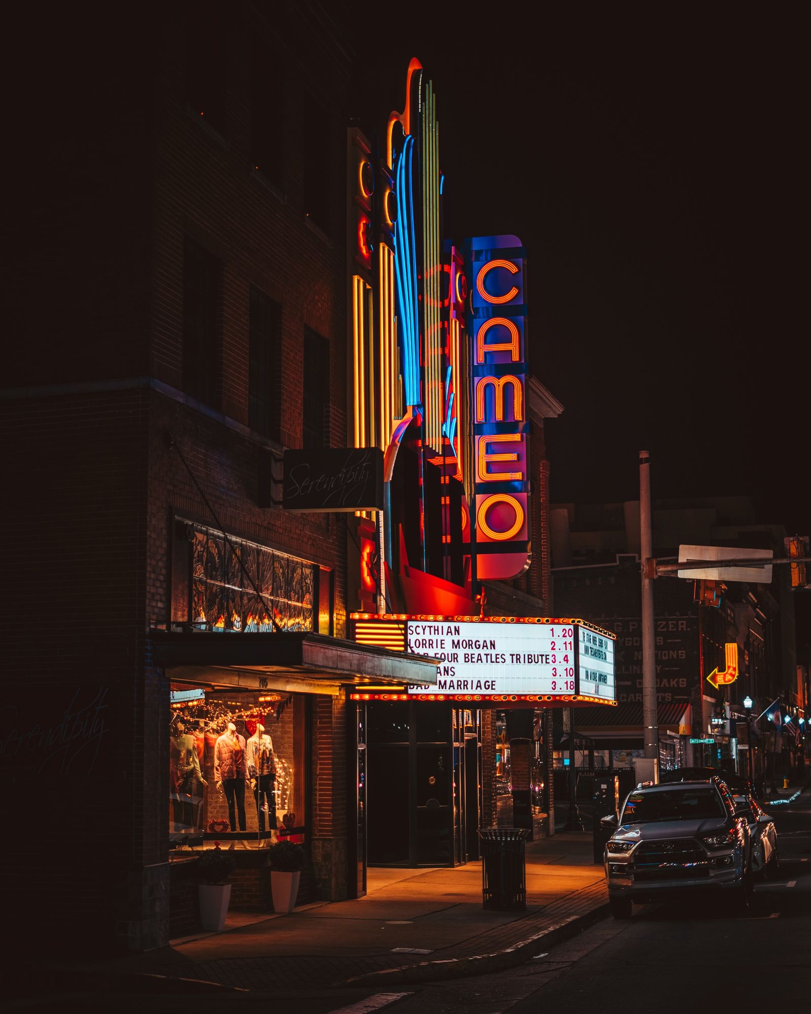 The Cameo Theater vintage sign at night, Bristol, Virginia