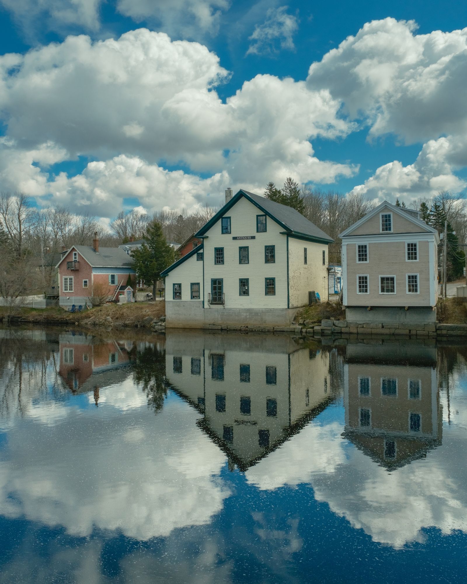 Clouds reflecting in the Narraguagus River in Cherryfield, Maine