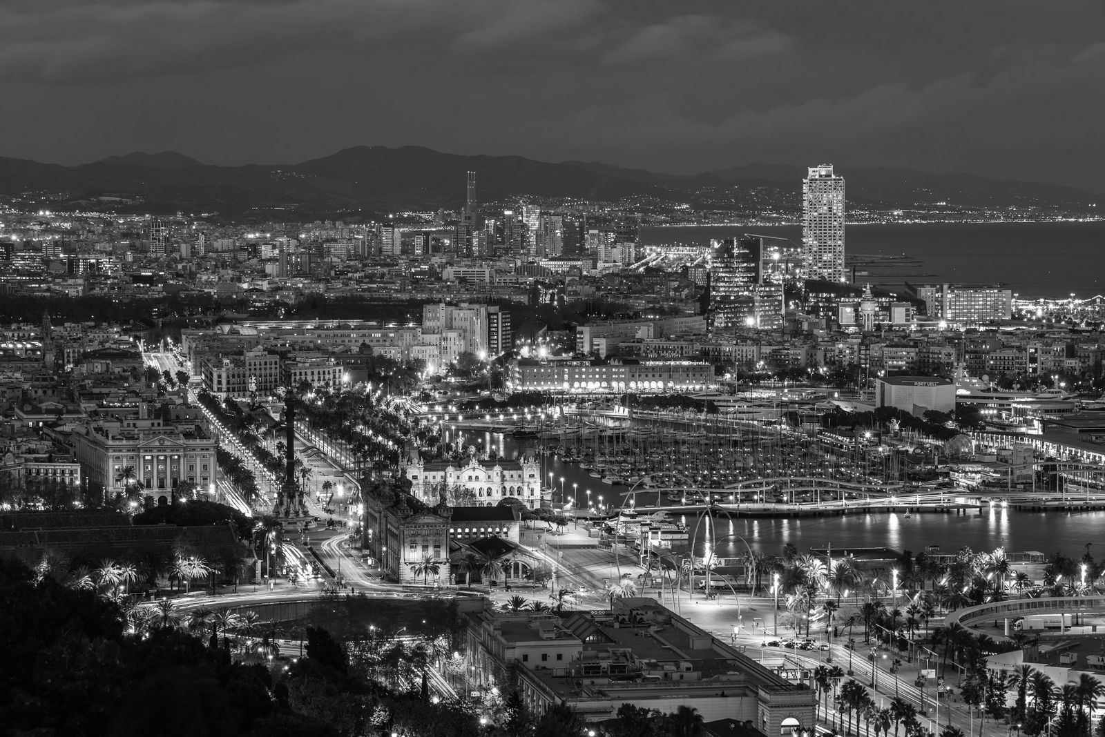 Nighttime in Barcelona 01 B&W