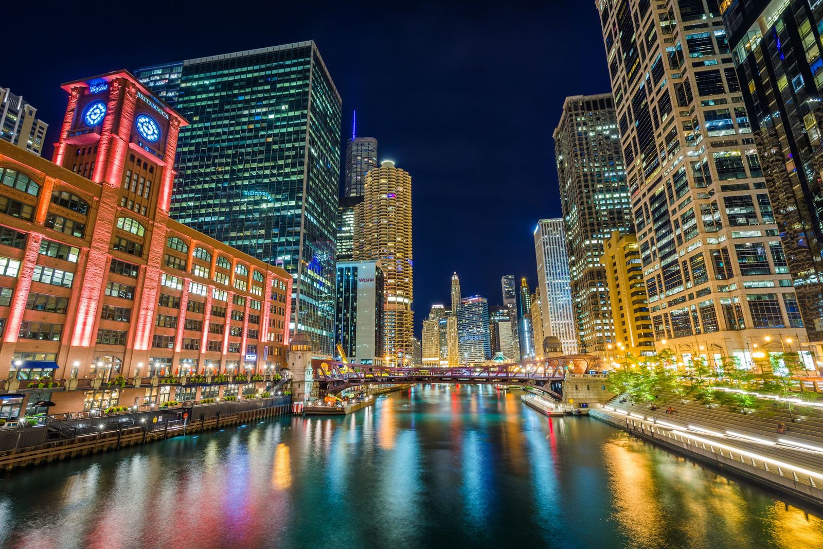 Riverwalk at Night, Chicago